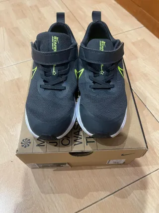 Zapatillas deportivas Nike para niño en buen estado. - Cierre de velcro. - Diseño con detalles en verde neón. - Suela blanca.