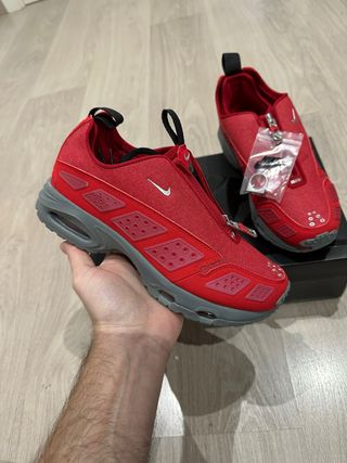 Zapatillas Nike Air Max SNDR en color rojo. - Diseño con cierre de cremallera. - Detalles en gris. - Logo de Nike visible. - Anillo con logo nike incluido Envío rápido en doble caja o entrega en mano. #Nike #NikeAir #AirMax #AirMaxSNDR #NikeAirMax #Sneakers #ZapatillasNike #Zapatillas #Streetwear #ModaUrbana #NikeRojas #RedSneakers