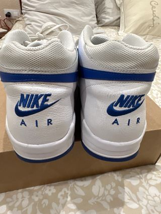 Zapatillas deportivas Nike Air Flight. - Diseño de corte alto. - Combinación de colores blanco y azul. - Detalle de swoosh en azul.