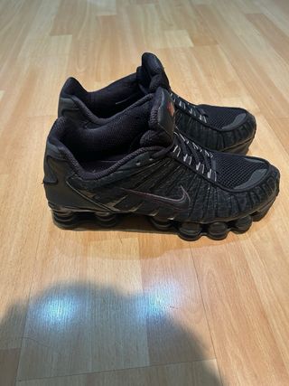 Zapatillas Nike Shox TL en color negro. - Diseño deportivo y moderno. - Suela con tecnología Shox para amortiguación. - Cierre con cordones.