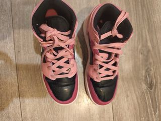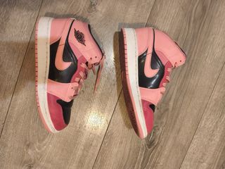 Zapatillas de caña media Nike Air Jordan 1 Mid. - Combinación de colores rosa y negro. - Diseño icónico de Jordan.