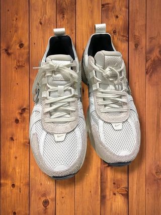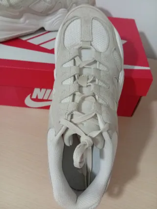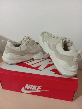 Zapatillas Nike Tech Hera en color beige y blanco. Parte superior de tela y refuerzos en antena. Fuertes y cómodas. Me costaron 100 € y las he usado dos veces. - Diseño moderno y cómodo. - Logo de Nike en el lateral.