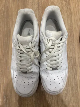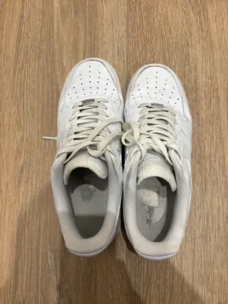 Vendo un par de zapatillas Nike Air Force 1. Son de color blanco y negro, talla 36. - Están en buen estado, aunque presentan algunas señales de uso. (tiene detras la palabra nike quitada y una pequeña grieta en el lateral,ver fotos) de ahi su precio. - Ideales para el día a día.