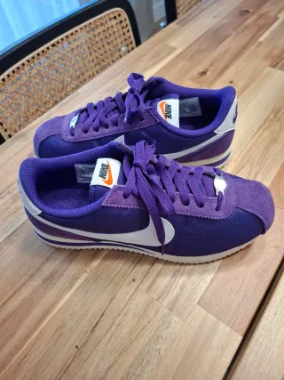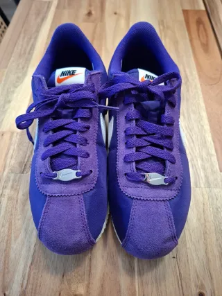 Zapatillas deportivas Nike Cortez en color morado y blanco. Sin uso. - Diseño clásico. - Detalles en gamuza.