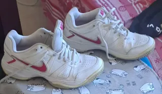 Zapatillas deportivas Nike en color blanco con detalles en fucsia. Usadas pero en buen estado. Aunque pone talla 40, yo calzo un 39 y me quedan bien.