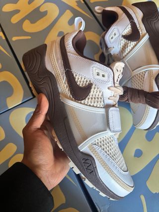 Nike Zoom Field Jaxx Travis Scott Light Chocolate - Talla 43 y 42.5 - Colaboración con Travis Scott y Nike - Combinación de colores beige y marrón chocolate. - Detalles de malla y cuero. - Cierre de velcro en el empeine.