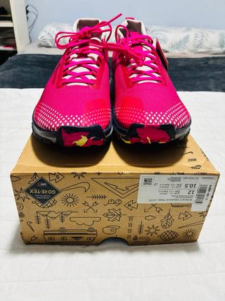Zapatillas Nike Pegasus Trail 5 GTX en color rosa y beige. Perfectas para trail running. - Tecnología GORE-TEX para impermeabilidad. - Diseño específico para senderos. - Suela con buen agarre.