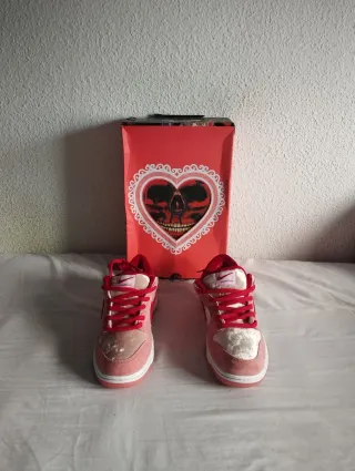 Zapatillas Nike Dunk SB Strangelove, nuevas y sin estrenar. Diseño único y llamativo con detalles en tonos rosados y corazones, suaves al tacto y con materiales de alta calidad. Comodidad y acabados premium que marcan la diferencia. Talla 42, con caja original en excelente estado. Ideales tanto para coleccionistas como para darle un toque exclusivo y streetwear a tu outfit. 💌 Más información y negociación por privado.