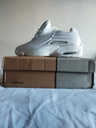 Zapatillas de la colaboración Nike × NOCTA (Drake), en blanco con detalles metálicos, con un diseño moderno y llamativo que no pasa desapercibido. Materiales de calidad y muy cómodas. Suela resistente y ligera, perfectas para llevar todo el día sin problema. Estilo urbano y minimalista, combinan con cualquier outfit streetwear o casual. Edición limitada, ideales para coleccionistas o para destacar con un look único. Talla: 42 Estado: nuevas, sin estrenar. Caja original incluida. 💌 Más información o negociación por privado.