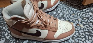 Vendo un par de zapatillas Nike Court Vision Alta, talla 37. Son de color blanco y tienen diseño en marrón oscuro. Nuevas, con etiqueta, a estrenar.