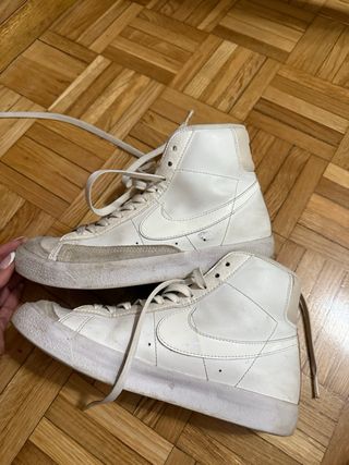 Zapatillas altas de estilo clásico. - Diseño de caña alta. - Combinación de blanco y detalles en beige. - Cierre con cordones. - Están en muy buen estado, lo único es que están un poco sucias pero no tienen ningún tipo de rozadura ni roto