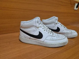 Zapatillas altas de la marca Nike en color blanco y negro. Un clásico para el día a día. - Diseño de caña alta. - Swoosh lateral en negro. - Cordones blancos.
