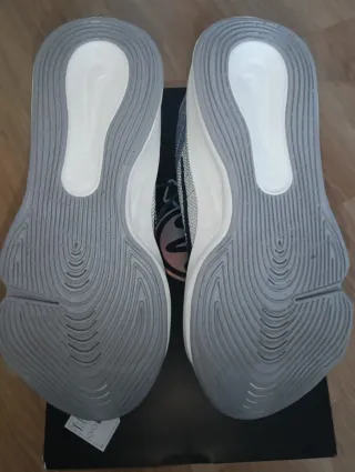 Zapatillas deportivas Nike en color negro con detalles blancos. Se encuentran en excelente estado, como nuevas. - Diseño moderno y deportivo. - Suela blanca con detalles. - Cierre con cordones.