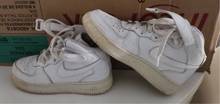 Zapatillas Nike Air Force 1 de caña media en color blanco. Perfectas para el día a día. - suela amarillenta - Cierre con cordones y velcro. - Detalle de logo en el lateral. - Suela de goma. - Logo 'AIR' en la suela.