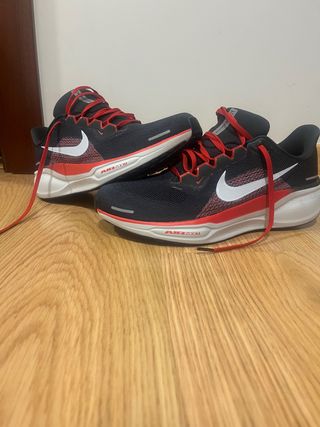 Zapatillas deportivas Nike Zoom Pegasus 41 en color negro y rojo. Diseñadas para ofrecer comodidad y rendimiento. - Usadas 3 veces literalmente. - Parte superior de malla transpirable. - Amortiguación Zoom Air. - Suela de goma duradera. NO CONTESTO NINGUNA OFERTA