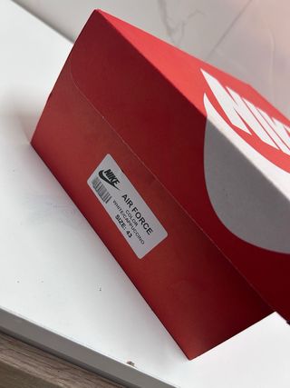 Caja de cartón con el icónico logo de Nike. - Diseño en color rojo con detalles blancos. - Ideal para guardar zapatillas u otros artículos.