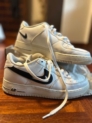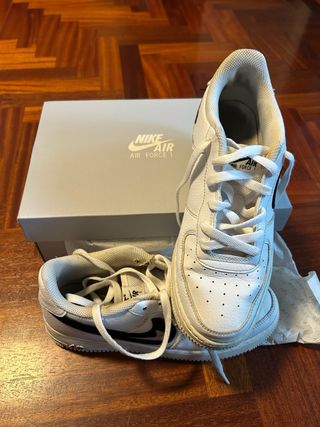 Zapatillas clásicas de corte bajo con el icónico diseño Air Force 1. Se entregan con su caja original en perfecto estado. - Parte superior de cuero blanco. - Swoosh lateral en negro. - Detalle 'AIR' en la mediasuela.
