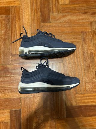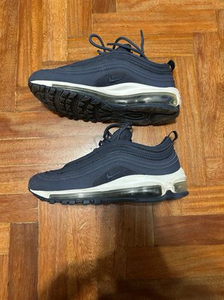 ✨ Estado: Usadas un par de veces. Se encuentran en excelente estado, con la unidad de aire intacta y la suela con todo su dibujo original. 👟 Modelo: Nike Air Max 97. 📏 Talla: 36.5 EU / 4.5 US / 23.5 CM. 🔵 Colorway: Midnight Navy (Azul marino con mediasuela blanca y cámara de aire transparente). 💎 Diseño icónico: Inspiradas en los trenes de alta velocidad japoneses, con sus famosas líneas onduladas y detalles reflectantes. 🌬️ Amortiguación Max Air: Unidad de aire visible a lo largo de toda la suela que proporciona una comodidad legendaria durante todo el día. 💪 Durabilidad: Combinación de materiales sintéticos y malla para una mayor t