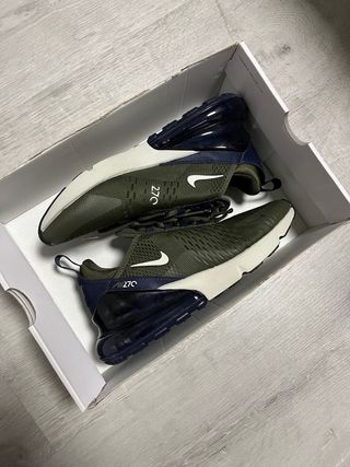 Zapatillas Nike Air Max 270 en colores verde y azul. - Diseño moderno y cómodo. - Detalle de logo Nike en blanco. - Suela con unidad Air visible.