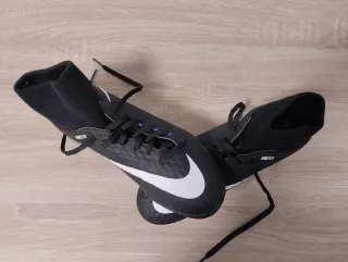 Zapatillas de fútbol Nike con diseño moderno. - Color negro y blanco. - Cierre con cordones. - Diseño tipo calcetín. Están nuevas, se las regalaron a mi hijo y le quedaban pequeñas