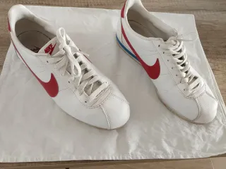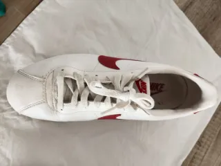 Zapatillas deportivas Nike clásicas con un diseño icónico. - Combinación de blanco y rojo. - Logo de Nike en los laterales.