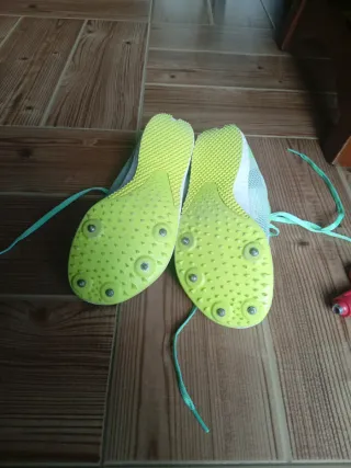 Zapatillas de running con clavos. - Color verde y azul. - Diseño ligero y transpirable.