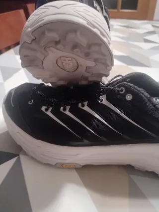 Zapatillas Hoka One One Mafate en color negro y blanco. Perfectas para tus aventuras. - Suela vibram - Cierre con cordones. - Suela de goma. - Diseño deportivo. - Usados un rato
