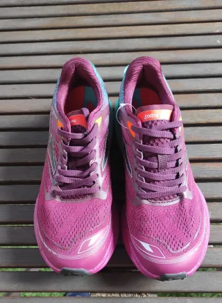 Zapatillas de trail running Joma en talla 41. Combinan un llamativo diseño en morado y turquesa. Nuevas sin caja La incorporación de placa de carbono a este modelo de competición proporciona un impulso adicional en distancias largas TR-6 men 25 unisex granate No tiene etiqueta de la talla - Parte superior de malla transpirable. - Suela con buen agarre para terrenos irregulares. - Detalle de logo en el lateral.