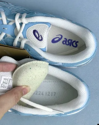 Zapatilla deportiva Asics Gel NY con un diseño moderno. - Combinación de colores azul y beige. - Detalle de logo en el lateral.