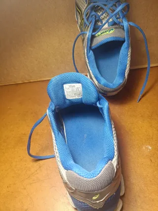 Zapatillas deportivas Asics Gel Saiun 3. Prácticamente nuevas. Usadas 20min. - Diseño en color azul con detalles en amarillo y naranja. - Suela con tecnología PureGEL y FF BLAST+. - Talla 43.5.