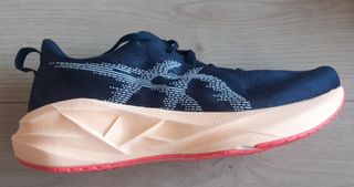 Zapatillas de running Asics Novablast 5. - Solo usadas 15km. - Color Midnight-Orange Blow. - Tejido transpirable para mayor comodidad. - Suela con amortiguación para un mejor rendimiento.