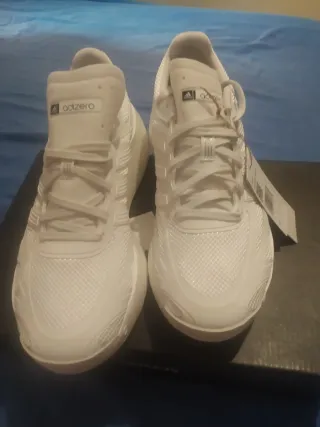 Zapatillas Adidas Adizero Aruku en color blanco. - Diseño deportivo y ligero. - Cierre con cordones. - Detalle de las tres bandas características de Adidas. Talla 43 1/3