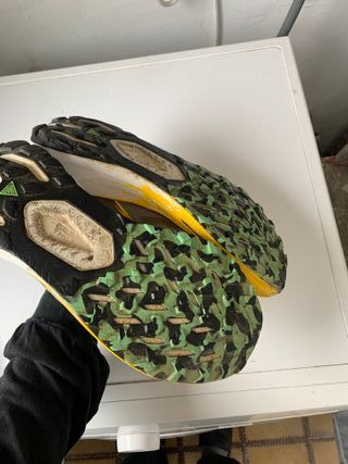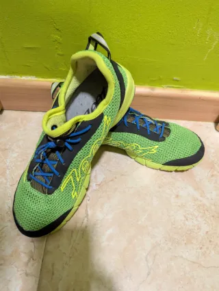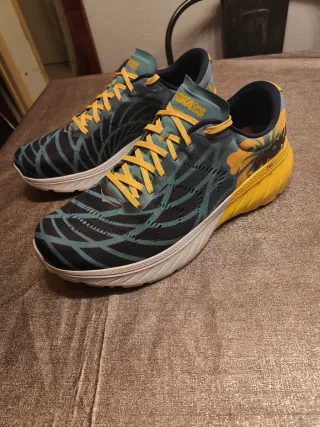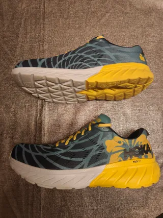 Zapatillas Hoka One One edición especial Ironman usadas un par de veces impecables imposible conseguir y menos en esta talla se vende porque me van demasiado grandes súper cómodas . - Talla 48.5. - Combinación de colores azul verdoso y amarillo. - Diseño con detalles gráficos distintivos. NO NEGOCIABLE NO ENVÍO
