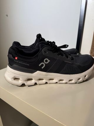 Zapatillas de running ON Running CloudRunner en color negro. Diseñadas para ofrecer comodidad y rendimiento en cada pisada. - Parte superior de malla transpirable. - Mediasuela con tecnología CloudTec®. - Suela de goma duradera. - Cierre con cordones.