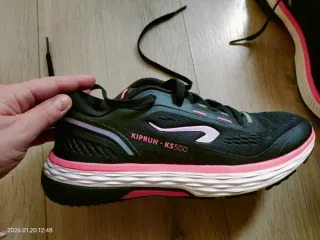 Zapatillas deportivas Kiprun KS500 en color negro con detalles en rosa. - Diseño moderno y deportivo. - Combinación de colores llamativa.