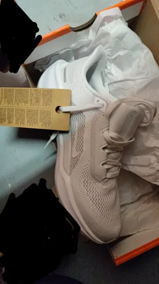 Zapatillas deportivas Nike Pegasus 40 en tonos beige y blanco. Perfectas para correr o para el día a día. - Diseño ligero y transpirable. - Suela con amortiguación. - Cierre con cordones.