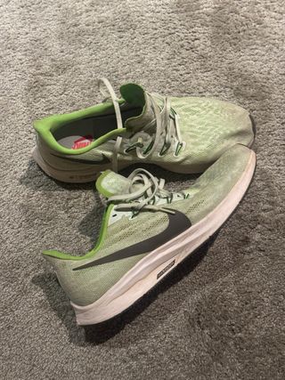 Zapatillas deportivas Nike Zoom Fly en color verde y blanco. Diseñadas para el running. - Parte superior de malla transpirable. - Suela de goma para mayor tracción. - Cierre con cordones.