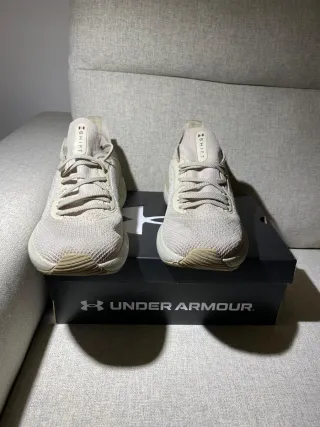 Zapatilla deportiva Under Armour modelo Shift. Modelo muy versátil que permite hacer runing, buena amotiguación y trabajo de fuerza por su estabilidad. Ideal para crossfit, Hyrox. No es una zapatilla para hacer grandes tiradas largas se runing. - Diseño en color beige y gris. - Logo de la marca en el lateral.