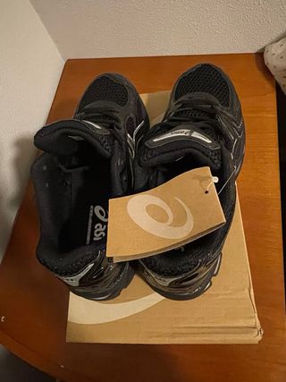 Zapatillas Asics Gel negras, sin usar y en su caja original. - Modelo deportivo. - Diseño moderno con detalles plateados. - Incluye etiqueta.