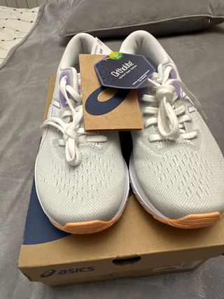 Zapatillas deportivas Asics con un diseño moderno y detalles en morado y blanco. Perfectas para el día a día. - Parte superior de malla transpirable. - Suela con amortiguación. - Cierre de cordones. - Detalle de logo en la lengüeta y el lateral.
