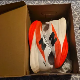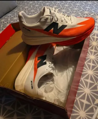Zapatillas de running New Balance SC Elite en llamativos tonos naranja y blanco. Diseñadas para ofrecer un rendimiento superior. 46,5 talla placa de carbono
