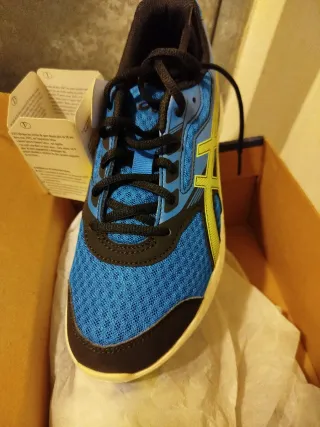 Zapatillas deportivas Asics con un diseño moderno y llamativo. Nuevas - Combinación de colores azul y amarillo. - Materiales transpirables para mayor comodidad.