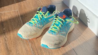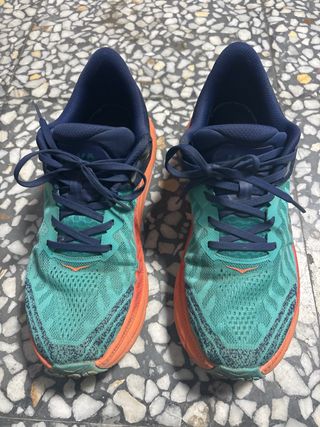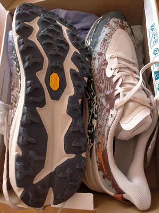 Zapatillas Hoka nuevas, SIN ESTRENAR talla 44 2/3. Diseño con estampado multicolor. Suela Megagrip.