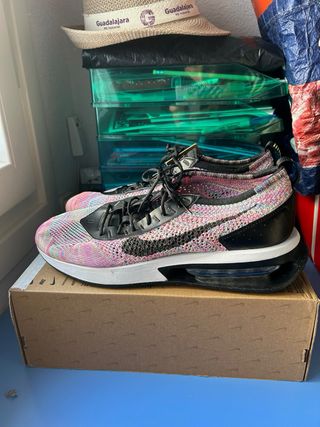 Zapatillas deportivas Nike Air Max Flyknit Racer en talla 48.5, completamente nuevas con etiquetas y su caja - Diseño multicolor con detalles en negro. - Tejido Flyknit transpirable. - Suela Air Max para máxima amortiguación.