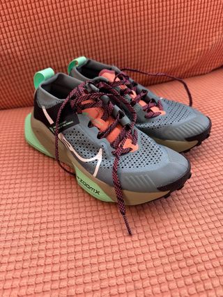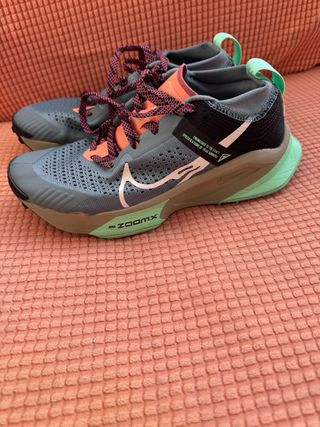 Zapatillas de trail running Nike Zegama en talla 36.5. Diseñadas para ofrecer rendimiento en terrenos irregulares. - Parte superior de malla transpirable. - Sistema de amortiguación ZoomX. - Muy poco uso. Usadas para andar 2/3 veces