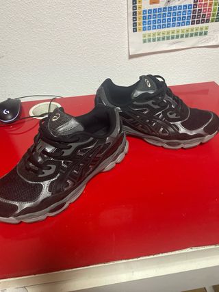 Zapatillas deportivas Asics sin estrenar. - Talla 40. - Color negro y gris. - Longitud de la suela: 25.25 cm.