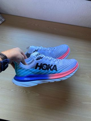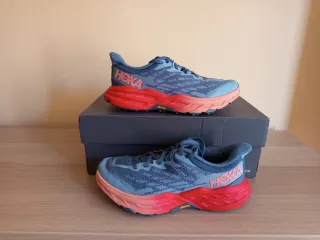 Zapatillas Hoka Speedgoat 5 para trail running usadas,muy bien cuidadas. - Suela Vibram.Buen agarre. - Cómodas y ligeras. - En buenas condiciones.