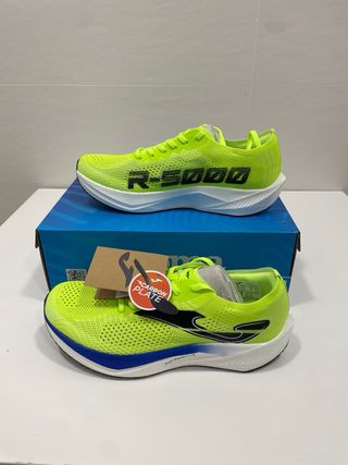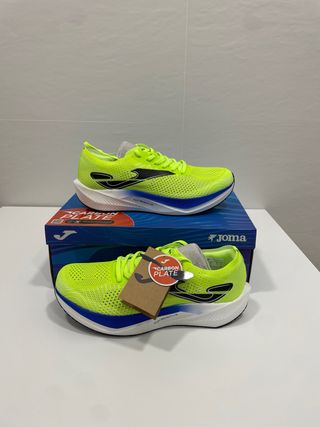 Zapatillas de running Joma R5000 con placa de carbono. Modelo del 2025. Precio nuevas en tienda 180€. - Modelo: R5000 - Tecnología: Carbon Plate - Color: Amarillo y azul - Talla: 44
