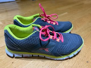 Zapatillas deportivas Reebok en tonos morado / azul y detalles en rosa. Talla 39. Poco usadas. Diseño moderno y deportivo. Suela blanca con motas. Perfecto para hacer deporte en interior, en el gimnasio o correr. - Diseño moderno y deportivo. - Cordones azules. - Suela blanca con motas.