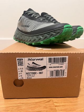Zapatilla de trail running Nnormal Tomir 2.0 en talla 40. Fue un regalo. He corrido tan solo 5k. Me quedan justas y no tengo ticket de devolución. Una pena porque la zapatilla es una pasada. Son una oportunidad excelente!